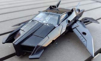 Here we have the Jet Vehicon in its vehicle mode. It's essentially the car mode of the original Vehicon but with wings replacing the wheels; that being said, those wings are not the only addition to the design. It's a very sleek and futuristic vehicle mode, that's for sure, what with the angular profile and the sharp points found from the fins, the front, and the wings of course. The vehicle mode also has plenty of Arms Micron ports that are present on the sides of the car as well as the wings. That being said, looking for a good spot for Igu is pretty hard since he's clunky as hell no matter what.