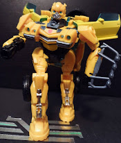 Transforming this guy is no different from the average Bumblebee since 2007. But I will say that I like how the wheels go behind Bumblebee's head rather than stay in front of the doors like before, though the leg transformation and backpacks looks like it's back to parts hinging onto each other rather than folding inwards to be more flush. The resulting robot mode looks like a mashup of the design we have from ROTB mixed with the proportions he'd have in 2007. It's a weird mix that feels like it's trying to mimic his Classic Camaro design he briefly had in the first movie, yet it doesn't go well with the simpler design traits. He thankfully is closer to the aesthetics of the main 5 movies for Rise of the Beasts, but it just doesn't really fit that well for the accurate design, especially with how it wasn't meant to be lean. That and he has his cheat with the pecs parallel rather than angled like Bumblebees generally are. He is also REALLY lacking in paint for some areas, mostly the thighs, feet, and the arms.