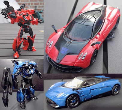 Stinger getting a new mold is great, and so is having a footsoldier representing the KSI robots under Galvatron's influence. How do both figures hold up, though? Let's break things down. The Pagani Huaiya is beautifully faithful, and it looks great in Stinger Red and Sentry Blue. Transformation feels fairly unique, though parts of it do seem a bit familiar with the sides being made up from the arms or the back of the vehicle being placed behind the lower legs. The robot modes are bulkier and somewhat squat, but I never minded that apart from how hollow the back of the legs are and how the forearms look like wizard sleeves with fists etched in. Both figures feel cheap, especially with the swivel for the right forearm's weapon, but I can't help but feel how annoying it is for Stinger to have a less-impressive claw weapon while KSI Sentry kept the back pieces for the shurikens to go.