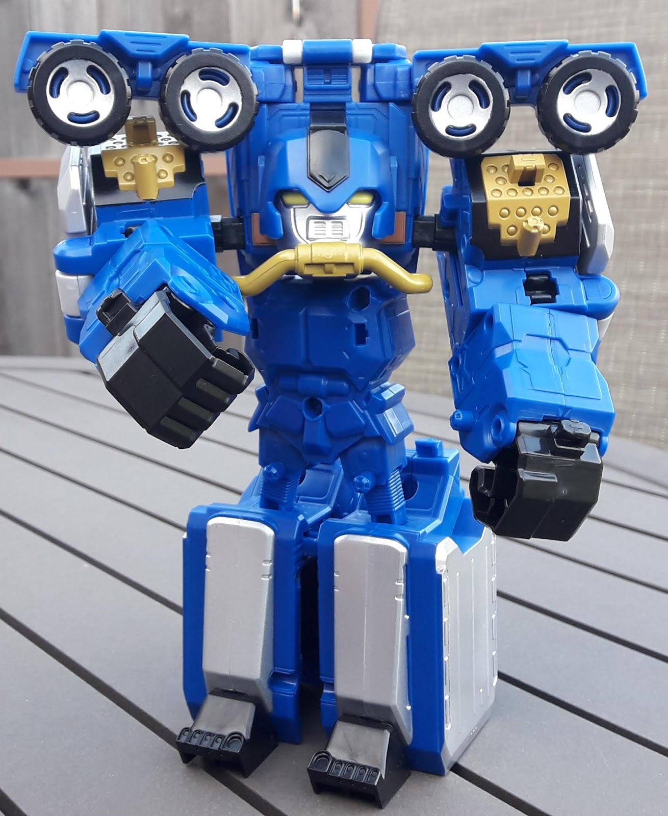Here it is with the head attached. It's reminiscent of the Lion Bus Zord from RPM, but nowhere near as cartoony as the RPM/Go-Onger aesthetics.