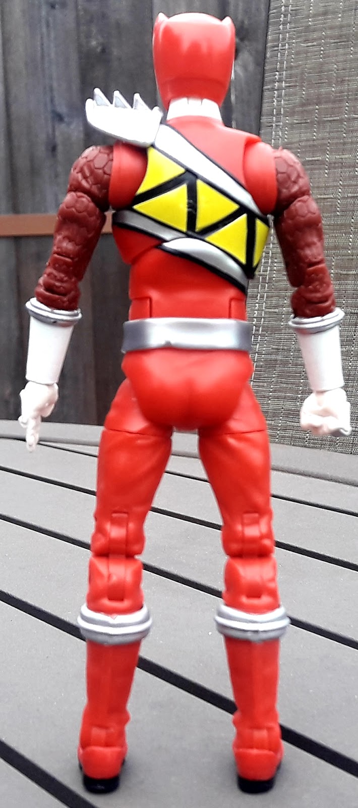 The next figure we have is Dino Charge Red. While I'm sure there are fans that would skip out on this figure because they've had too many Dino Charge Reds or if they don't care about Dino Charge and just want MMPR constantly (yawn), this is still a figure that should belong in a collection. I quite like how we have the Dino Charge exclusive details on this figure, like a painted belt buckle to store his chargers, the sash-esque chest and back design not being cheapened out, the arms having a different shade of red and a sculpted texture different from the rest of the suit, and the shoulder spike as well as the silver pieces on the hands adding onto this Ranger design. I do find it a bit weird that lining up the chest could be a bit weird to do when the front looks mostly normal but the back doesn't.