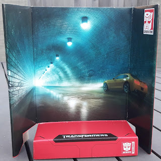 This is something I haven't done for the past two years worth of Studio Series image galleries: taking a look at their backdrops! From here on out, I'll be covering each backdrop that comes with its respective figure. This backdrop depicts the scene where Bumblebee scans the Camaro Concept that coincidentally had his same paint job after Mikaela asked Sam on why Bee would be an advanced robot yet take the form of an old car. I like the inclusion of the other Camaro in the background, but you really can't recreate the scene because of obvious printed-image-on-cardboard-backdrop reasons. Also, Bumblebee doesn't really fit too well in car mode (since the backdrops were made for the robot modes), but of course, Bumblebee didn't transform until the other robots met. Worthy of note with each Studio Series figure's backdrop also includes the new Generations and Authentic labels seen since 2014 while the base has the name of the movie they're from, so in the case of Bumblebee, it says "Transformers".