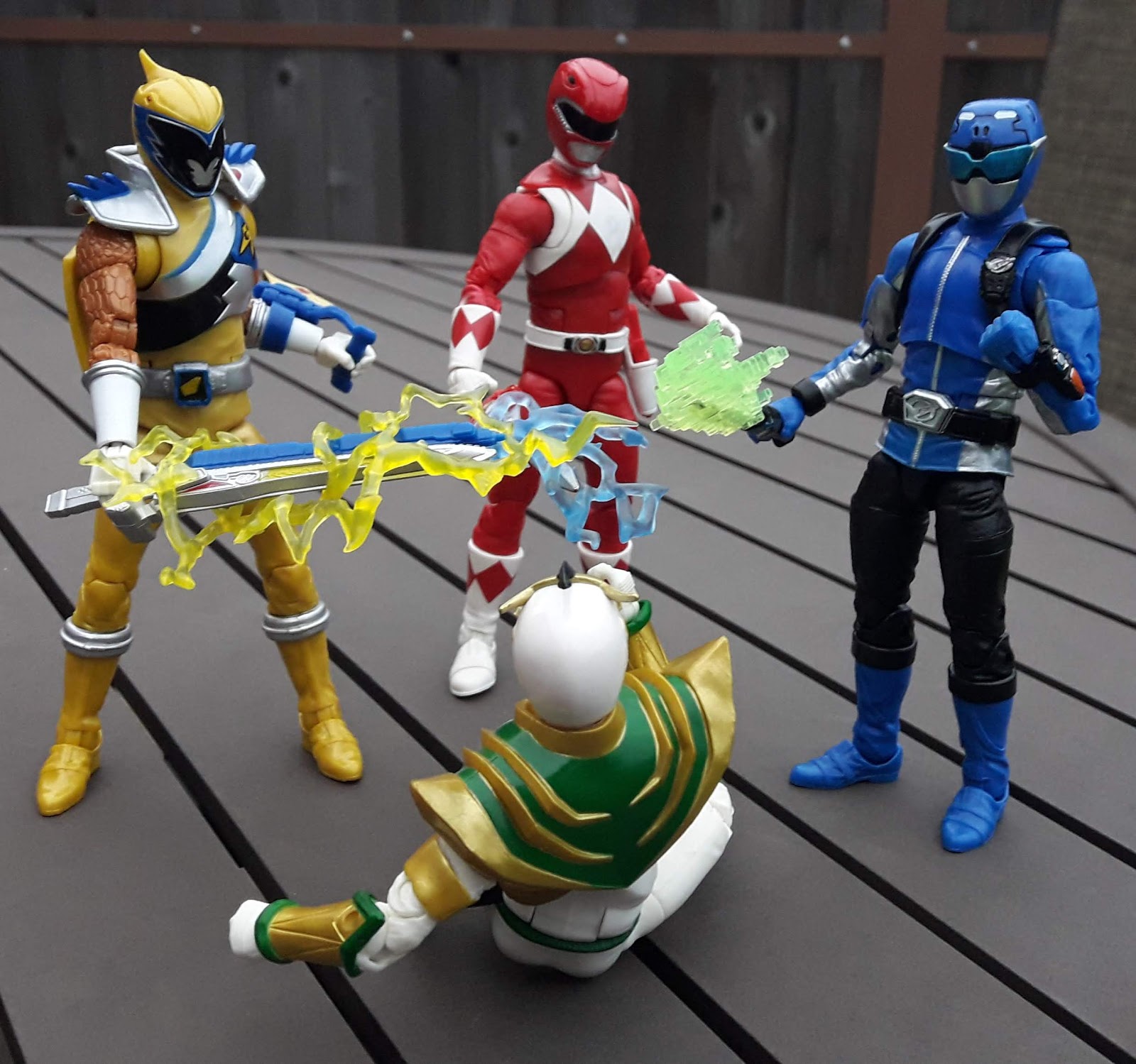 His accessories include the same effects piece used on the White Ranger, the Dragon Dagger, the alternate head, and two weapon holding hands.
