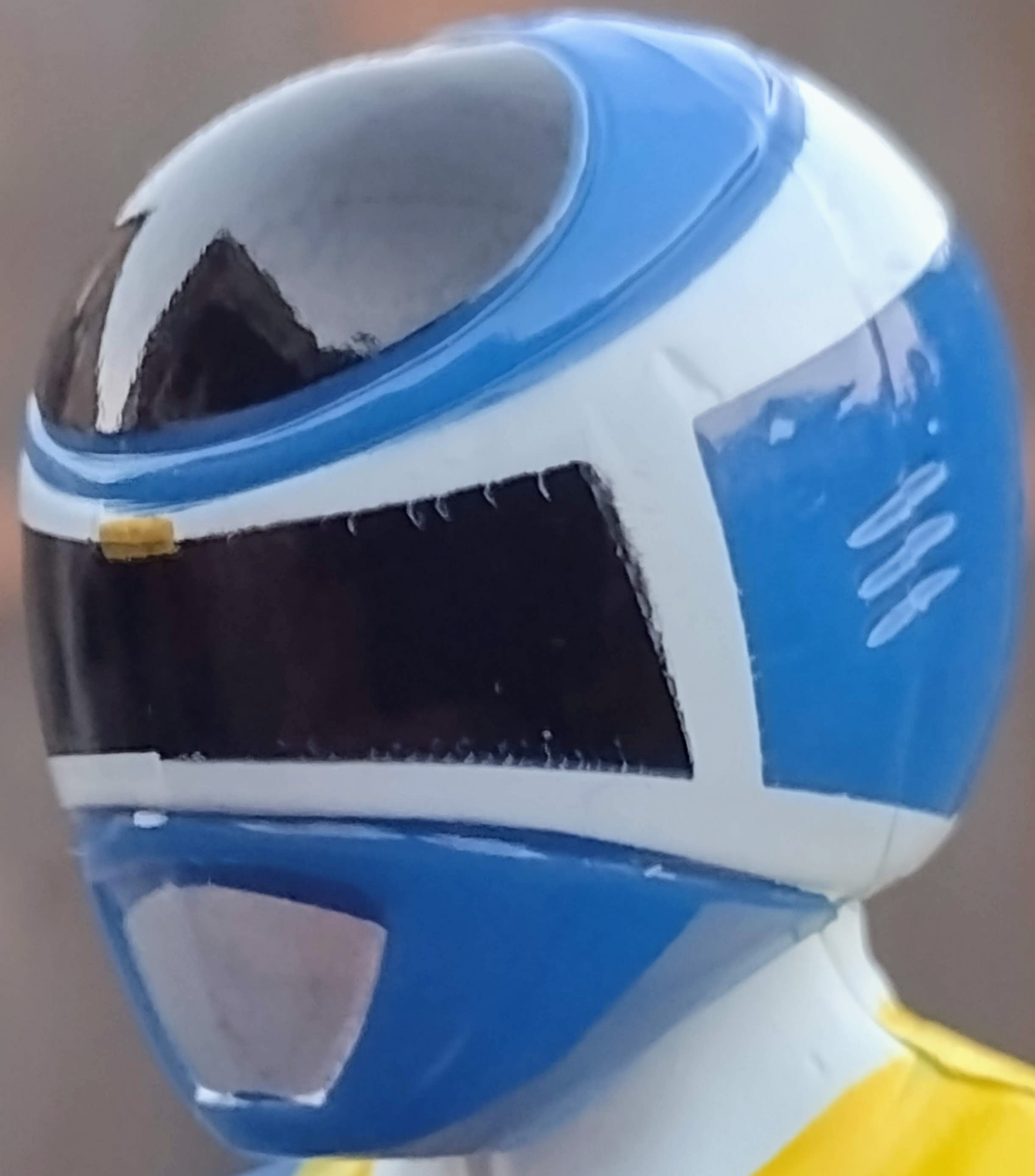 As far as the accessories of the Blue Space Ranger are concerned, you get the typical effect piece, a civilian head in the form of TJ Johnson, the Astro Axe, the Astro Blaster, a right fist, and a left karate chop hand.